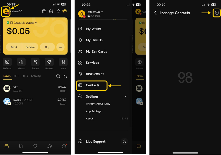 # Hướng dẫn thêm danh bạ trên Coin98 Super Wallet