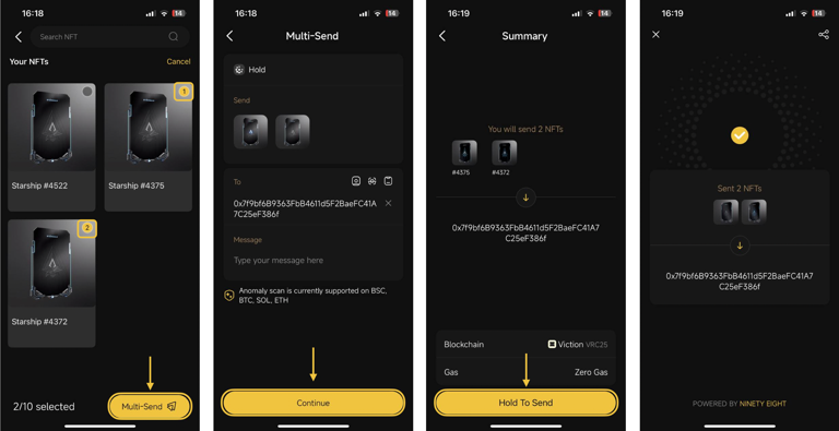 **Lưu ý:** Bạn chỉ có thể gửi tối đa 10 NFTs thuộc cùng 1 Collection trong 1 giao dịch gửi