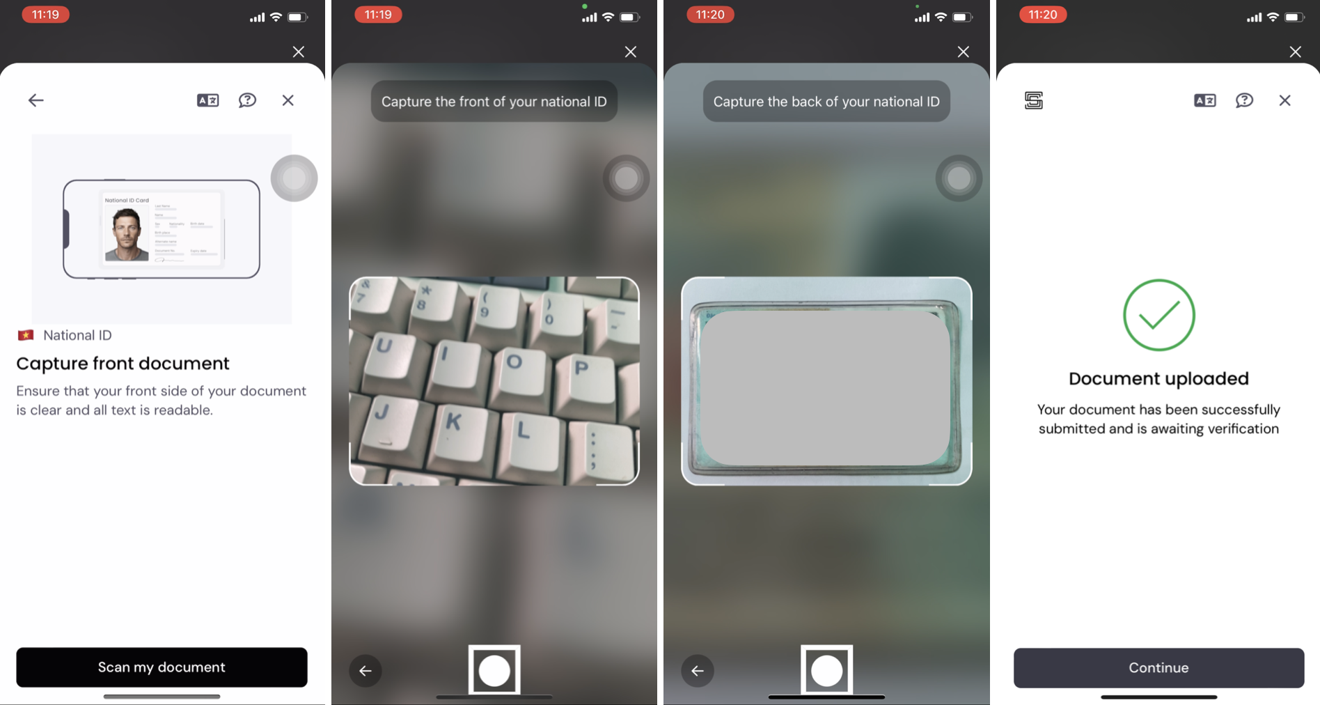 6.2 Gửi tài liệu để xác minh (ID Document)