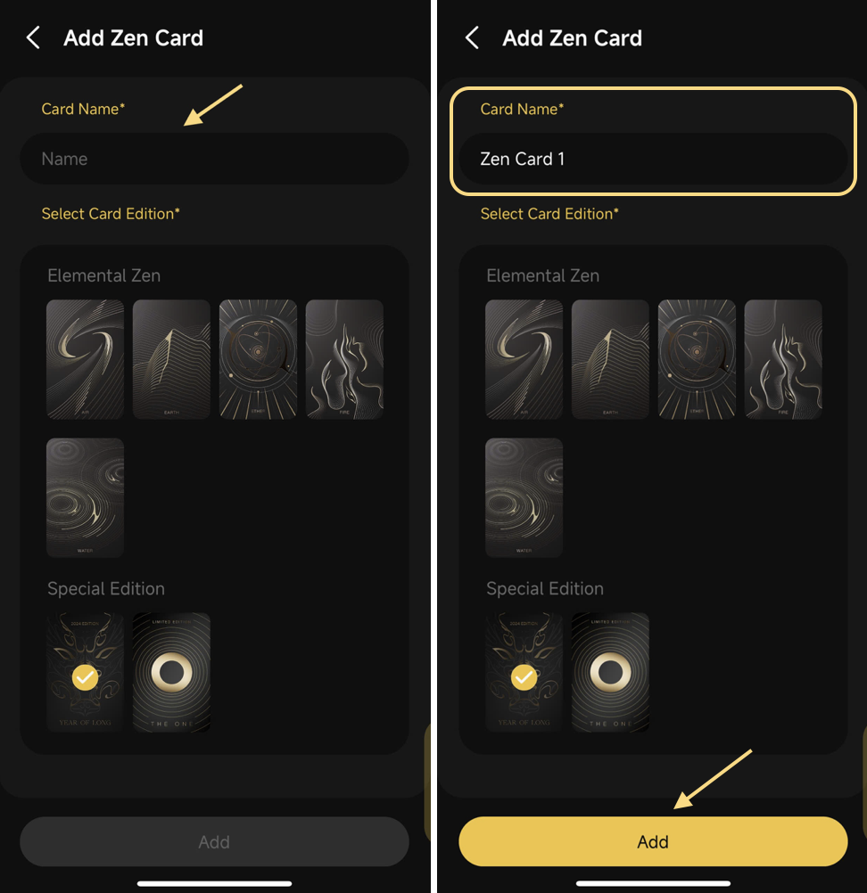 **Bước 4:** Nhập tên cho ví, chọn Phiên bản thẻ tương ứng và chọn **Thêm (Add)**.<br>